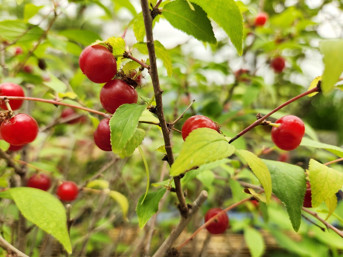 열매는 핵과이며 붉은색으로 7~8월에 성숙한다.